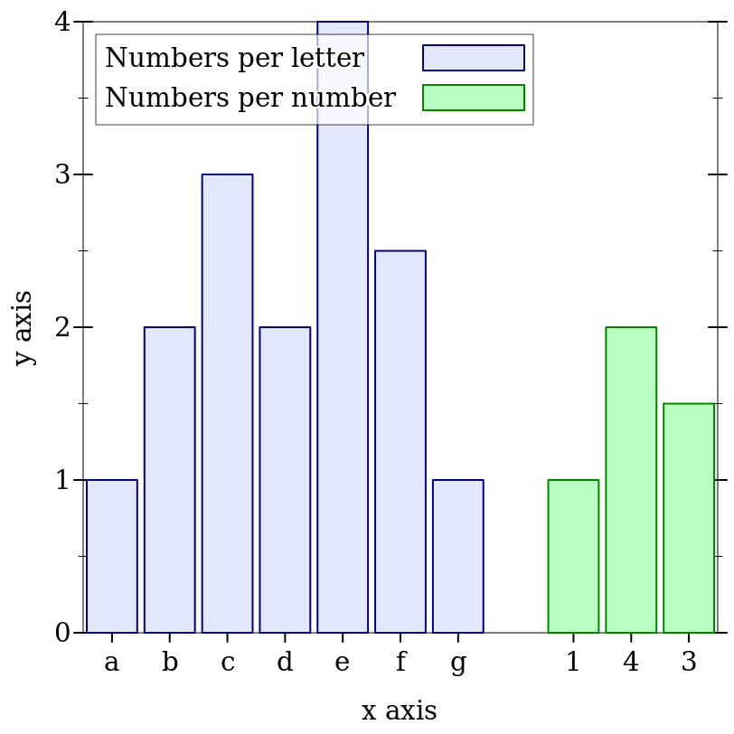 In general, the keyword arguments that determine the appearance of plots follow consistent naming conventions. The most common keywords are #:color (for fill and line colors), #:width (for line widths), #:style (for fill and line styles) and #:alpha. When a function needs both a fill color and a line color, the fill color is given using #:color, and the line color is given using #:line-color (or some variation, such as #:line1-color). Styles follow the same rule.