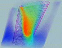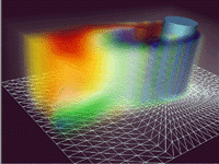 Volume rendering of simulated flow around a submarine fairwater (Nelson